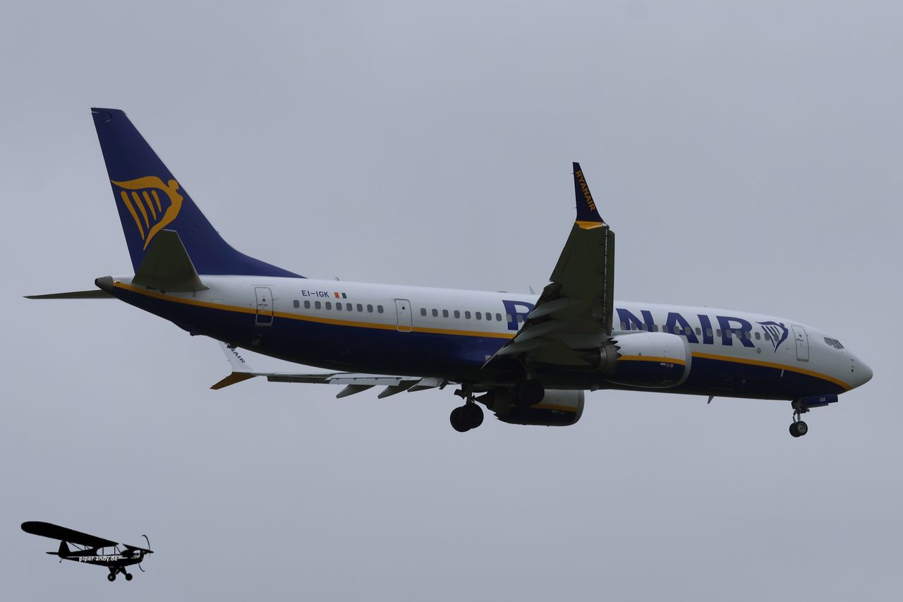 Boeing 737-8-200 MAX (Ryanair, EI-IGK), s/n.: 67075; Boeing 737-8AS (Ryanair [Malta Air], 9H-QFA), s/n.: 33592; Boeing 737-8AS (Ryanair, EI-EKS), s/n.: 38504