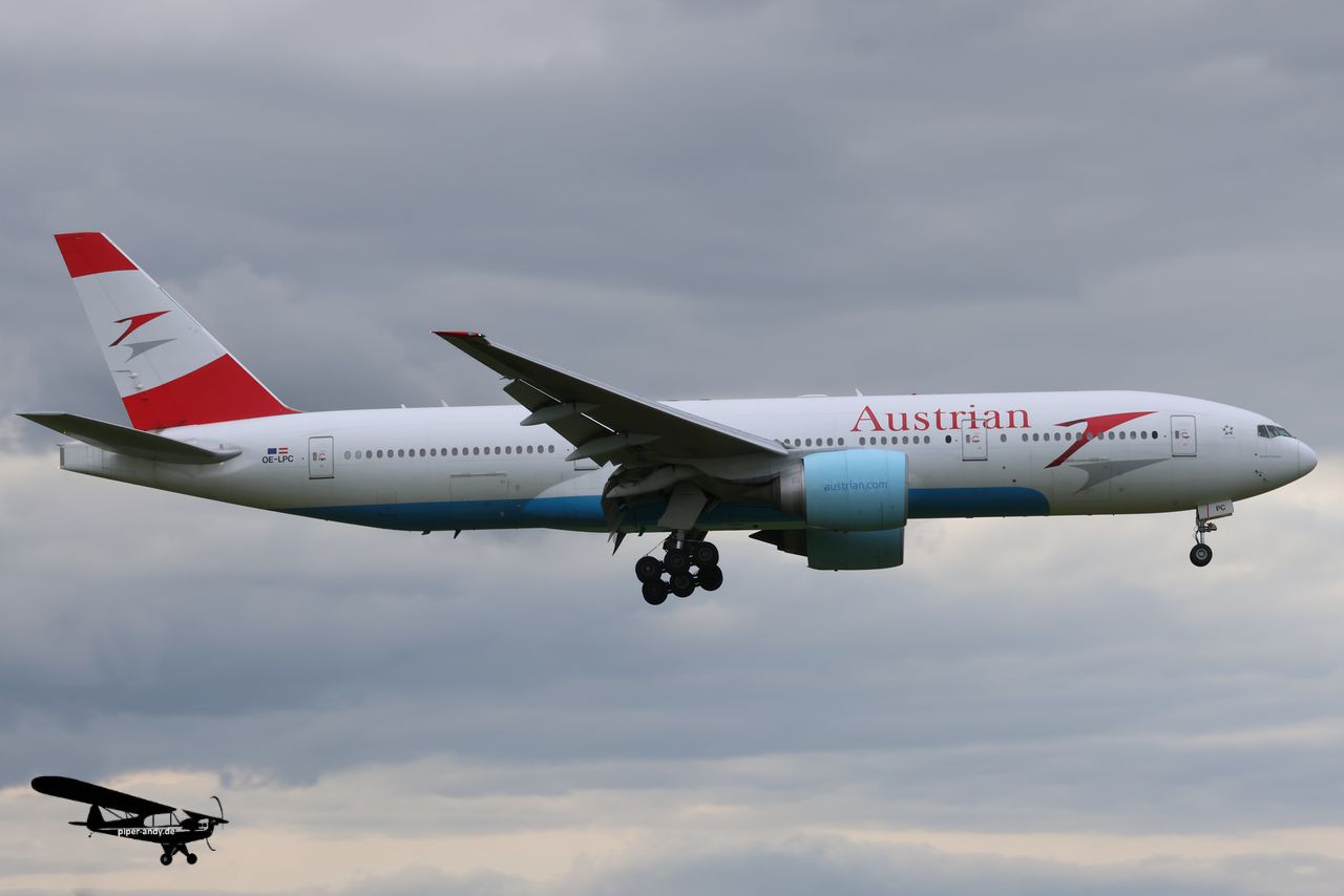 Boeing 777-2Z9(ER) (Austrian Airlines, OE-LPC), s/n.: 29313; Embraer 190-200LR (Austrian Airlines, OE-LWM), s/n.: 19000542