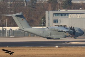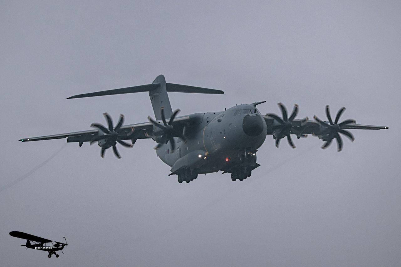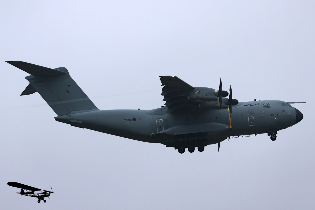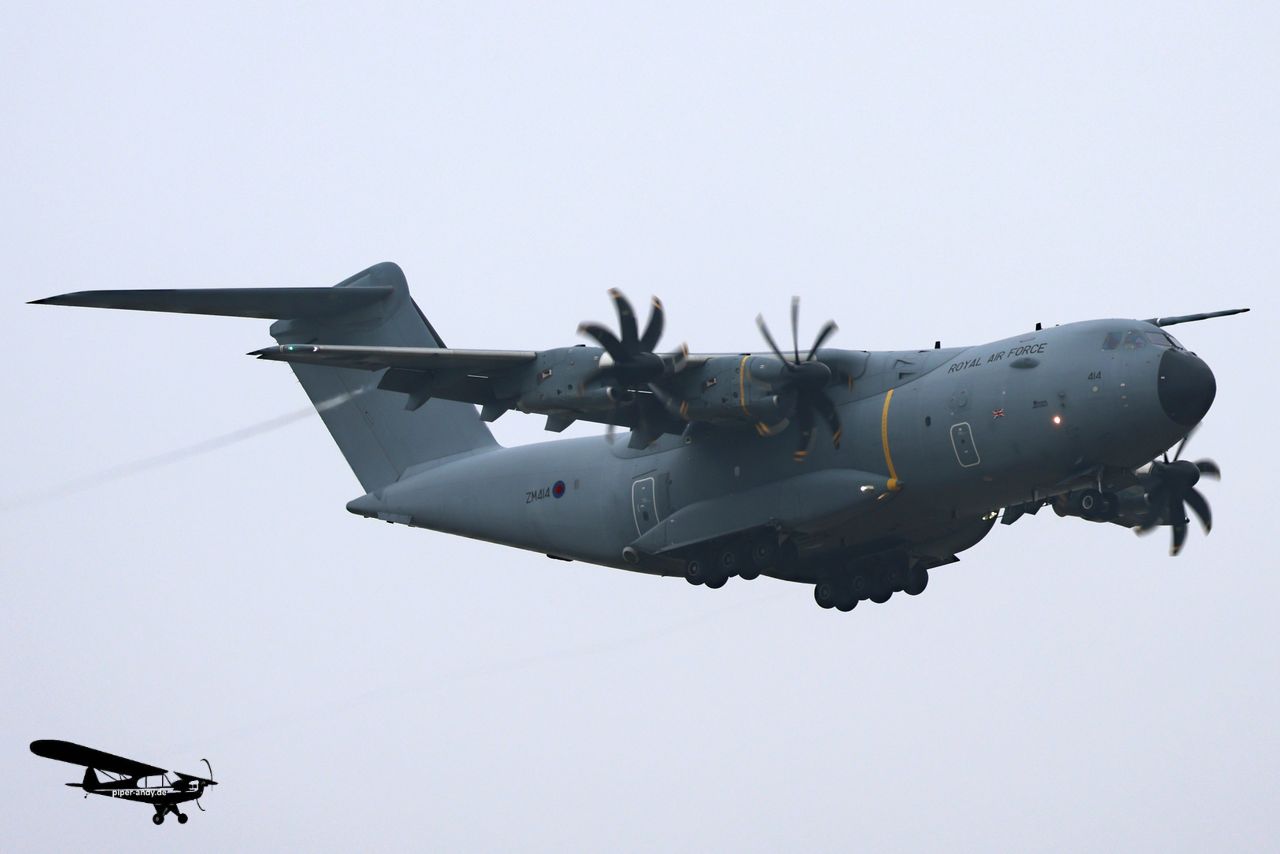 Airbus A400M (GB RAF, ZM414), s/n.: 047; Boeing 737-8-200 MAX (Ryanair, EI-IHC), s/n.: 62355; Bombardier BD-700-1A10 Global Express (Bestfly Aruba, P4-BFW), s/n.: 9099; Cessna 560XL Citation XLS+ (Aerowest Flugcharter, D-CAWP), s/n.: 560-6304