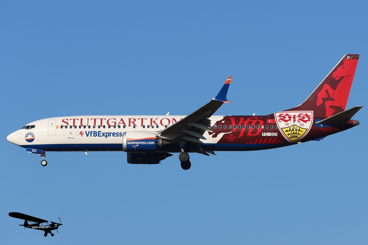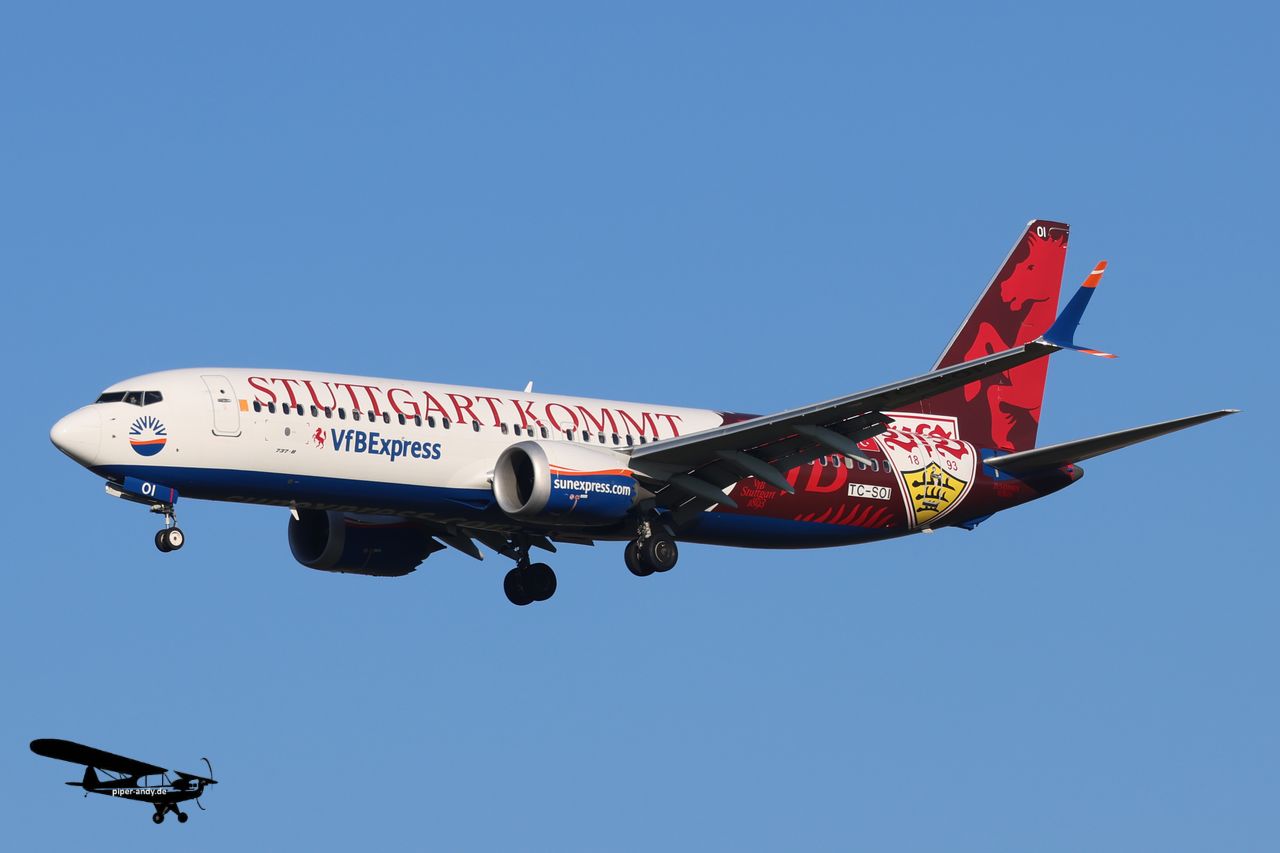 Airbus A320-271N (Lufthansa, D-AING) – „1926-2026 – 100 Jahre Lufthansa“ – cls., s/n.: 7588; Airbus A319-114 (Lufthansa, D-AILH) – „Goch“, s/n.: 641; Boeing 737-8AS (Ryanair [Malta Air], 9H-QAR), s/n.: 44692; Boeing 737-8 MAX (SunExpress, TC-SOI) – „VFBExpress – VFB Stuttgart kommt“ – Livery, s/n.: 61200; Bombardier Dash 8-Q402MR (France-Securite Civile, F-ZBMH), s/n.: 4577; Pilatus PC-24 (Jetfly Aviation, LX-PCK), s/n.: 314