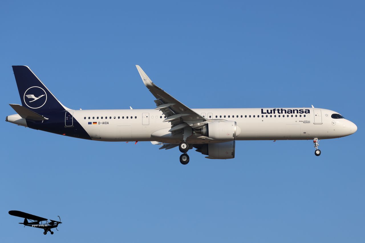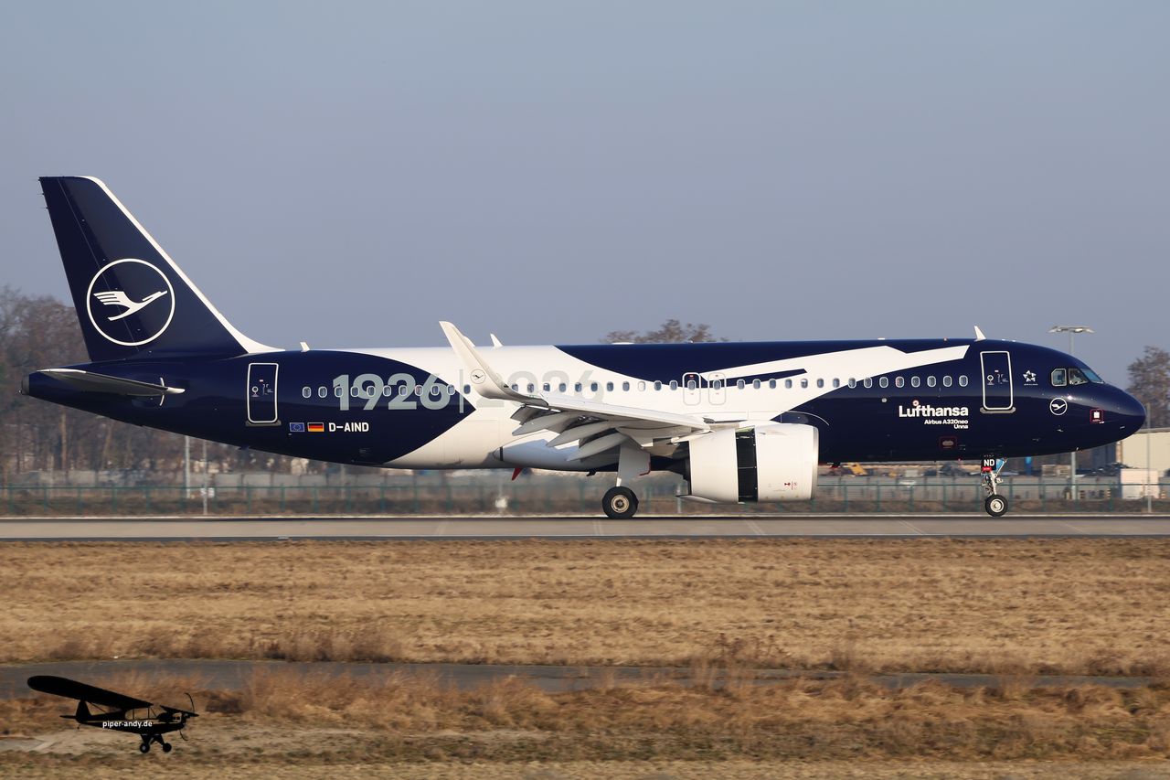 Airbus A220-371 (Air France, F-HOZB), s/n.: 55415; Airbus A319-132 (Air Serbia, YU-APF), s/n.: 3317; Airbus A320-251N (Eurowings, D-AENI) – „Premium BIZ inside“ – Sticker, s/n.: 11753; Airbus A320-271N (Lufthansa, D-AIND) – „1926-2026 – 100 Jahre Lufthansa“ – Livery, s/n.: 7078; Airbus A321-231 (Finnair, OH-LZP), s/n.: 7661; Airbus A321-251NX (Lufthansa, D-AIOA) – „Raunheim“, s/n.: 12713 – erster Airbus bei Lufthansa mit dem neuen CFM Leap-1A – Triebwerk; Bombardier BD-700-1A11 Global 5000 (Avcon Jet, OE-LHU), s/n.: 6534; Embraer ERJ-190-200LR (Austrian Airlines, OE-LWH) – „Star Alliance“ – Livery, s/n.: 19000486