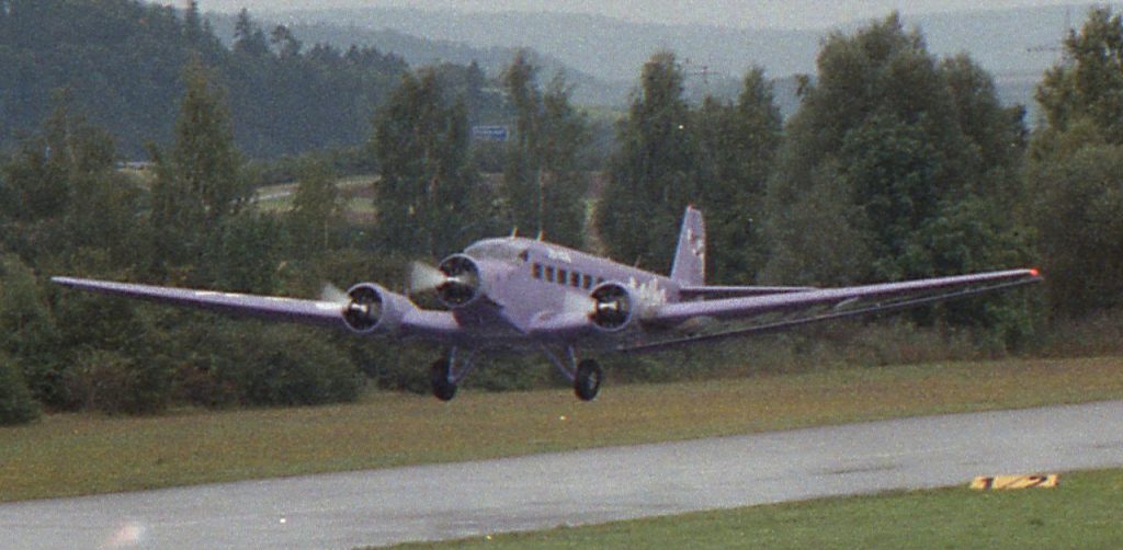 Besuch bei einem Fliegerfreund und da haben wir die Ju einschweben sehen. Also mal kurz an den Platz gefahren und geschaut. Die Bilder sind Scan’s von Negativen (ORWO Color, Kamera Exa 1b)