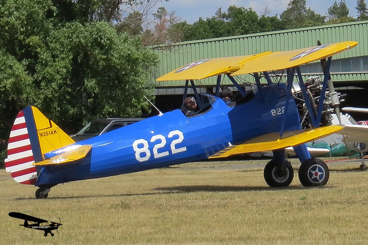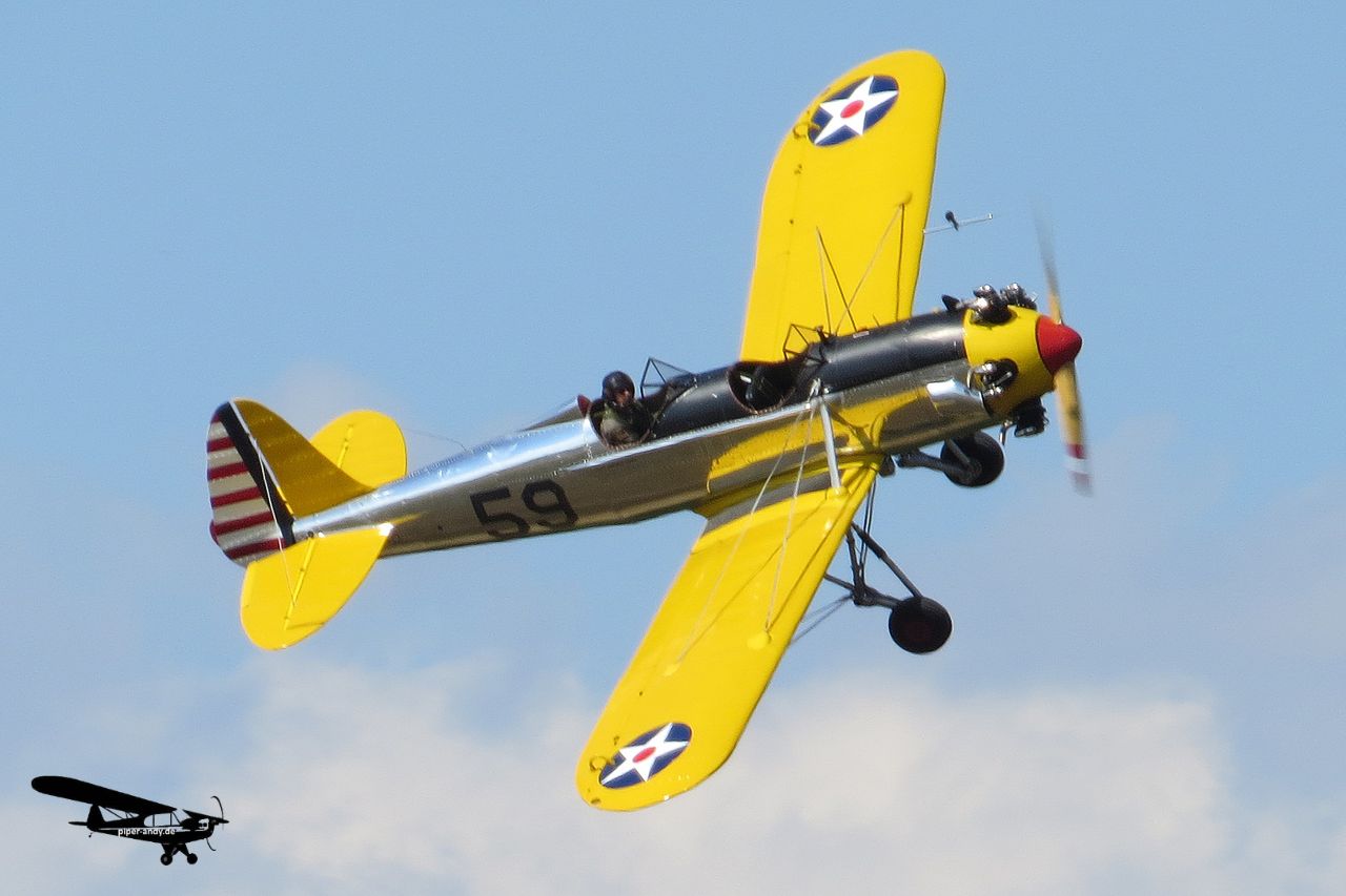 Boeing A75 Stearman (N60HW), s/n.: 75-5544; Boeing A75N1 (PT-17 Kaydet) Stearman (D-EMFL, 744), s/n.: 75-4695; Boeing A75N1 Stearman (D-EQXL, 787), s/n.: 75-658; Boeing A75N1 Stearman (N351AH, 822), s/n.: 75-12351; Boeing A75N1 Stearman (N67193, 399), s/n.: 75-8116; Boeing B75N1 Stearman (N5527N, U.S. Navy), s/n.: 75-5361; Boeing E75 (PT-13D Kaydet) Stearman (N9054H), s/n.: 75-8778; Boeing E75 Stearman (D-EMDV), s/n.: 75-5844; Boeing N2S-3 Stearman (N3972U, 326), s/n.: AR-26
